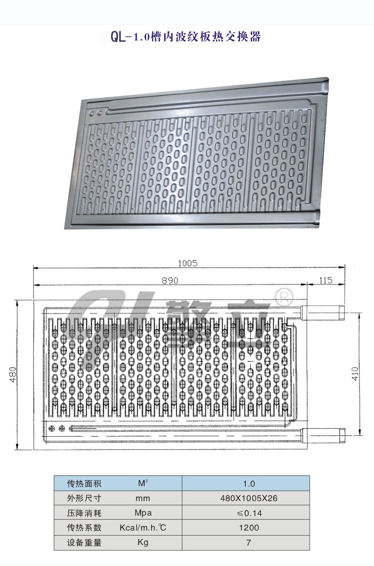波纹板热交换器是一种新颖沉浸式板状热交换热器,它是由两块特殊传热构造壁板组合成传热单元,主要适用化学表面处理、涂装工程以及相关工程领域工艺过程中液—液、汽—液交换。