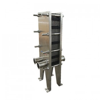 板式热交换器是由一组波纹金属板组成,板上有四个角孔,供传热的两种液体通过。金属板片安装在一个侧面有固定板和活动压紧板的框架内,并用夹紧螺栓夹紧。板片上装有密封垫片,将流体通道密封,并且引导流体交替地流至各自的流道内,形成热交换。流体的流量,物理性质,压力降和温度差决定了板片的数量和尺寸。波纹板不仅提高了湍流程度,并且形成许多支承点,足以承受介质间的压力差。 金属板和活动板压紧板悬挂在上导杆,并由下导杆定位,而杆端则固定在支撑柱上。但其中一种液体或两种液体在换热器不止通过一次,则接口应开在固定板和活动压紧板上 |