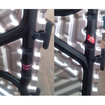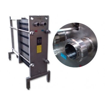 板式热交换器是由一组波纹金属板组成,板上有四个角孔,供传热的两种液体通过。金属板片安装在一个侧面有固定板和活动压紧板的框架内,并用夹紧螺栓夹紧。板片上装有密封垫片,将流体通道密封,并且引导流体交替地流至各自的流道内,形成热交换。流体的流量,物理性质,压力降和温度差决定了板片的数量和尺寸。波纹板不仅提高了湍流程度,并且形成许多支承点,足以承受介质间的压力差。 金属板和活动板压紧板悬挂在上导杆,并由下导杆定位,而杆端则固定在支撑柱上。但其中一种液体或两种液体在换热器不止通过一次,则接口应开在固定板和活动压紧板上 |