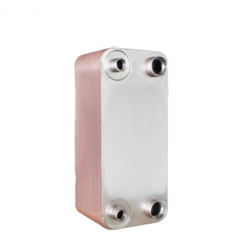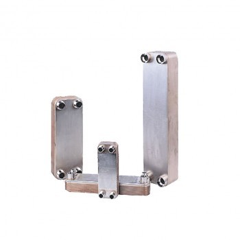 钎焊式热水换热器由具有一定波纹形状的金属板片叠装成的钎焊板式换热器,通过薄矩形通道进行热量交换,在适用范围内可取代管壳式换热器。具有高效低成本、耐高温高温、质量轻、安装便利等特点,适用于供热应用。