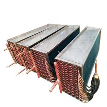 冷凝器特点:1、采用优质薄壁无缝紫铜管与高纯度铝翅片,经液压或机械涨管而成,传热系数高,韧性好,强度大,可承受水压,超高层建筑使用。2、翅片间距优化设计,换热面积充足,出风顺畅,不易积灰,传热效率高。