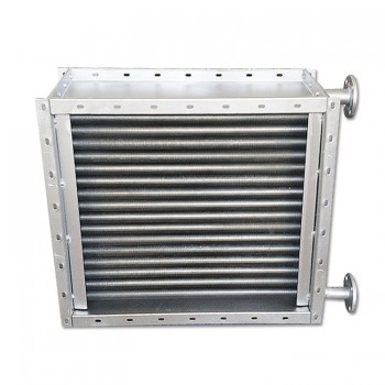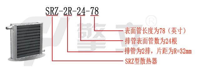 SRZ型散热器由外形框架、顺空气的三排叉排列螺旋翅片管束组成,散热翅片管通过机械绕片法,缠绕在无缝钢管(俗称光管)上,进行表面镀锌处理,传热翅片与散热管接触面积多且密,传热性能好,稳定并且不易腐蚀。通入的蒸汽或高温水流经钢管之内,热量通过间壁式的方式借助紧绕在钢管上的翅片传给片面的空气,达到加热空气的作用。