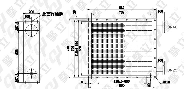 a、进汽接管端为有缩孔的翅片管一端,请用户安装前看清楚。