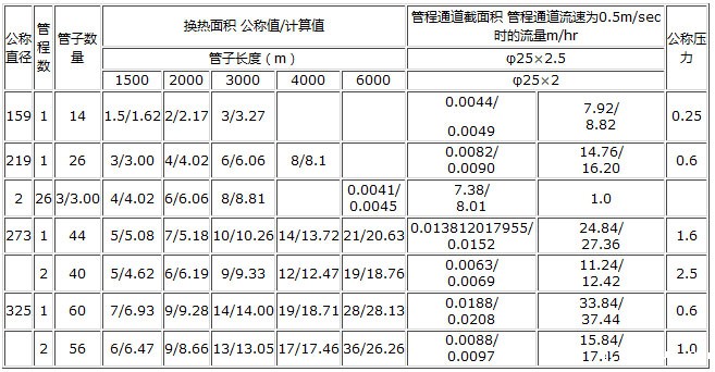 我公司生产的列管换热器有0.5~200㎡不同换热面积的各种规格分类: