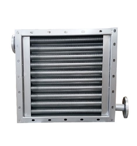 翅片式换热器主要用于干燥系统中空气加热,是热风装置中的主要设备,散热器采用的热介质可以是蒸汽或热水,也可用导热油,蒸气的工作压力一般不超过0.8Mpa,热空气的温度在170℃以下。