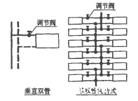 对于垂直双管系统 ,只要在散热器支管上加一个调节阀门即可实现散热器的个体调节(如图 1)。