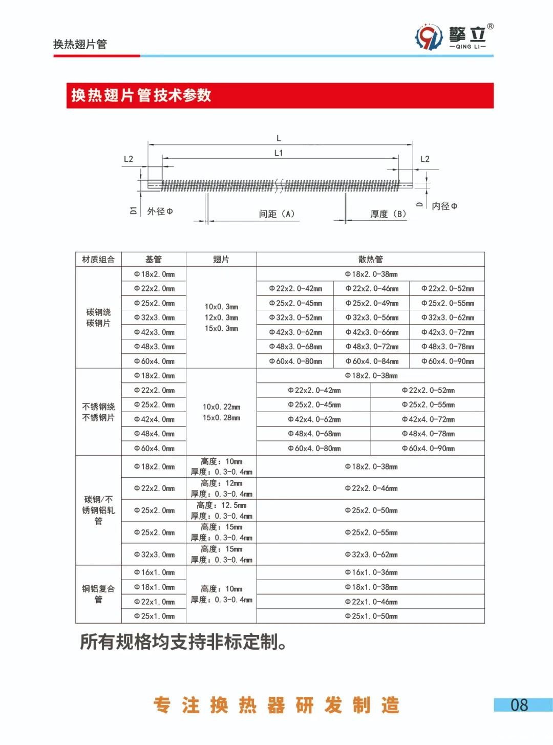 主要的材质有:碳钢/ND钢、不锈钢304/316L、铜管、铝翅片,其他特殊材料也可以根据数量来定制
